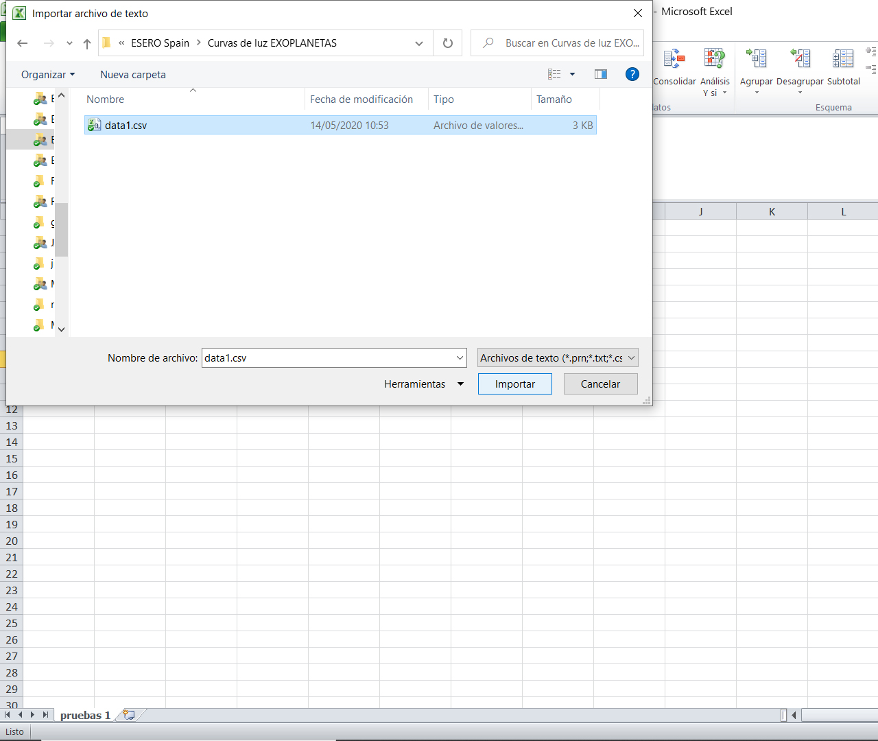 2) En segundo lugar buscaremos y seleccionaremos nuestro archivo csv