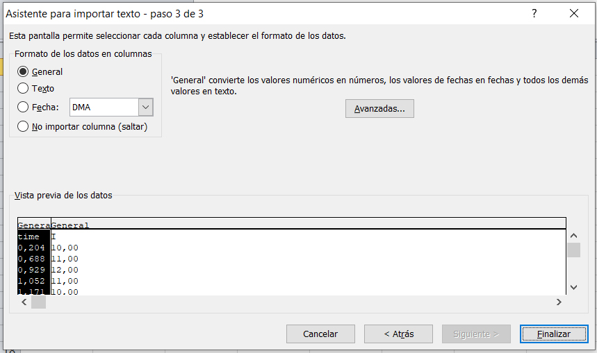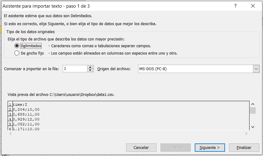 Para importar el archivo csv que hemos obtenido con la app Physic Toolbox Sensor Suit a una hoja de cálculo vamos a seguir los siguientes pasos: