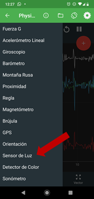 1) Abriremos la aplicación y seleccionaremos “Sensor de luz” en el menú de la izquierda