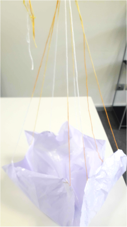 Una vez tenemos nuestro octógono, los puntos de enganche son 8, uno en cada vértice. Hacemos pequeños agujeros en los vértices, dejando un poco de margen para evitar que la bolsa se rompa.