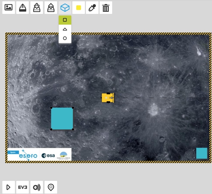 Añade varios obstáculos, simulando el terreno de Marte. En este ejemplo hemos añadido uno circular y dos cuadrados. También, les hemos cambiado el color para que sean marrones.