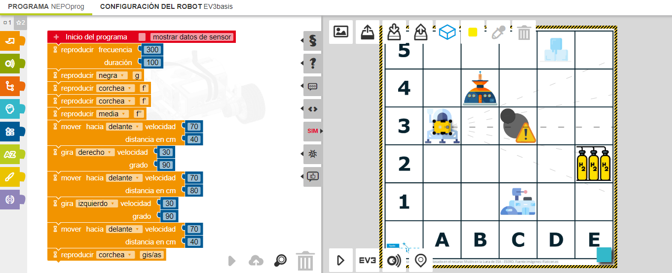 Añadiendo bloques de reproducir notas musicales o frecuencia, al inicio del programa, puedes crear una melodía. Aquí te mostramos un ejemplo.